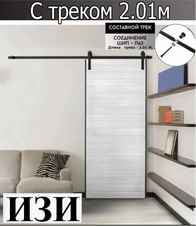 Для какой двери подходитАмбарный механизм с треком 2.01 метра подходит для легкой двери массой до 45 кг., шириной до 1000 мм., толщиной до 25 мм. Учитывайте, что Ваша дверь должна быть на 10 см больше дверного проема. Длина трека должна быть в два раза длиннее двери. Если дверь 100 см, то трек должен быть 200 см. Диаметр ролика 37 мм.