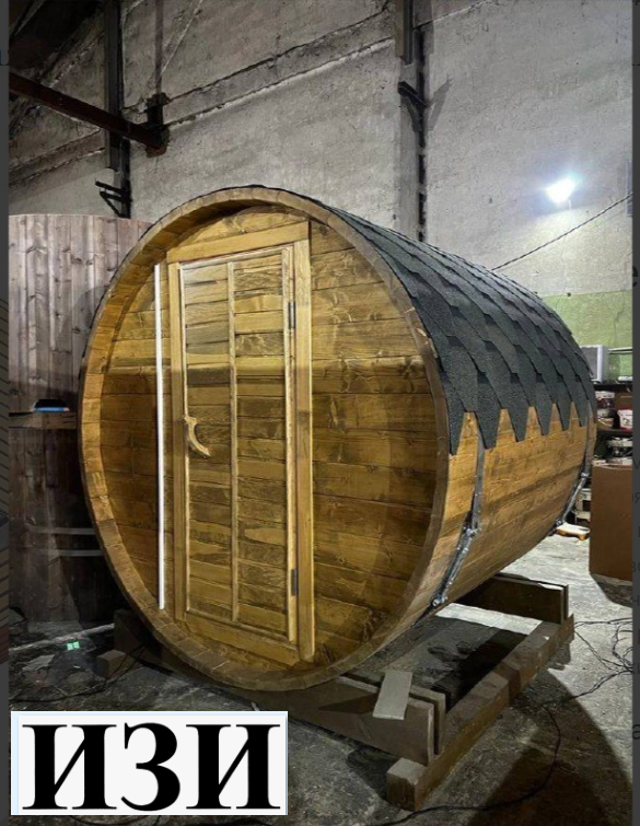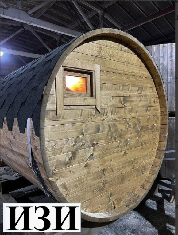 Продуманная конструкция: Баня-бочка имеет классическую форму, обеспечивающую равномерное распределение тепла и легкое проветривание.