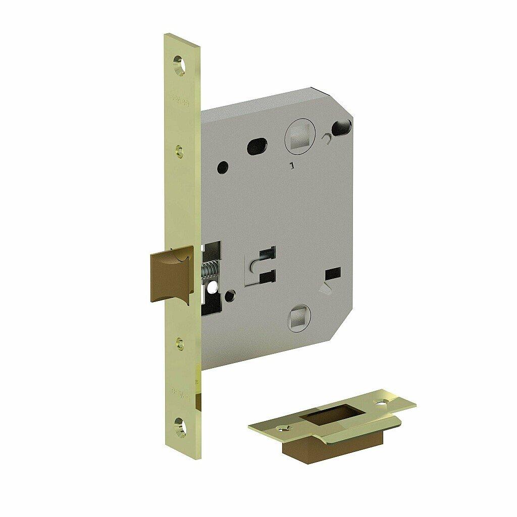 - Описание Врезная универсальная защелка из стали с язычком из ударопрочного пластика предназначена для установки на межкомнатные двери с возможностью запирания на фиксатор.