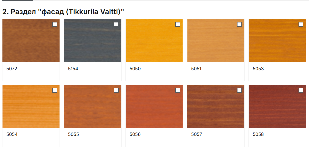2. Раздел "фасад (Tikkurila Valtti)" выбирайте цвет :