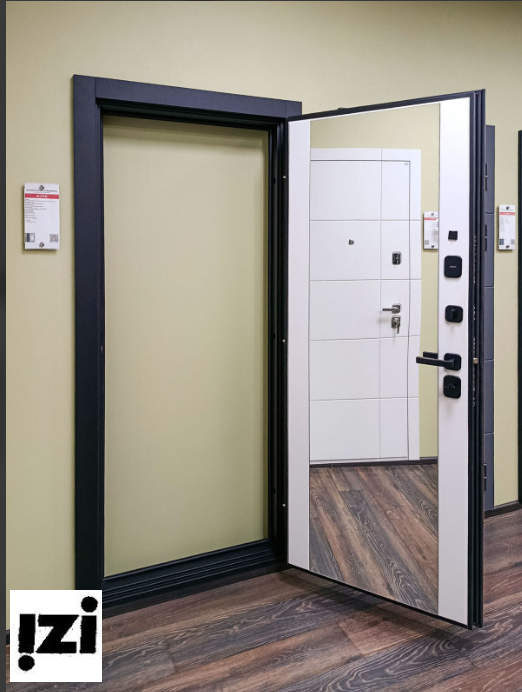 Софт белый зеркало – акцент изысканности: В центральной части двери элегантно расположено зеркало в отделке "Софт белый". Этот контрастный элемент придает двери легкость, визуально расширяет пространство прихожей и добавляет нотку роскоши. Зеркало не только функционально, но и является стильным акцентом, отражающим ваш безупречный вкус.