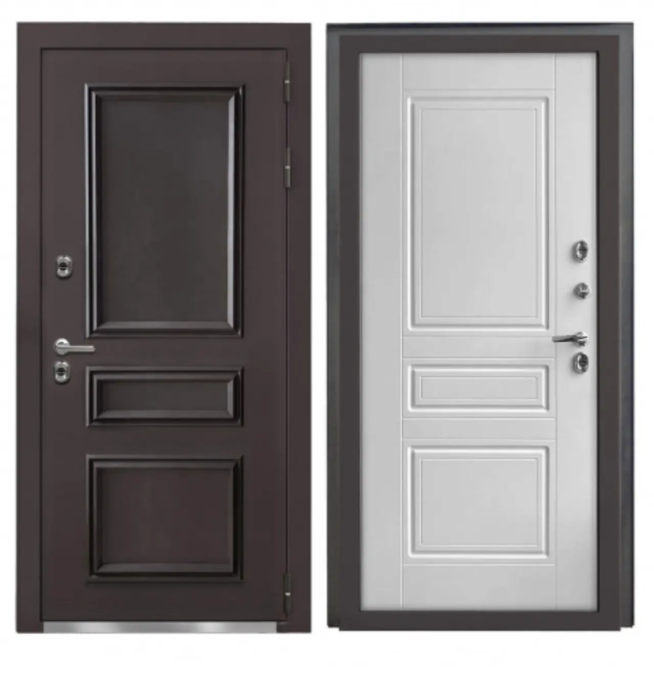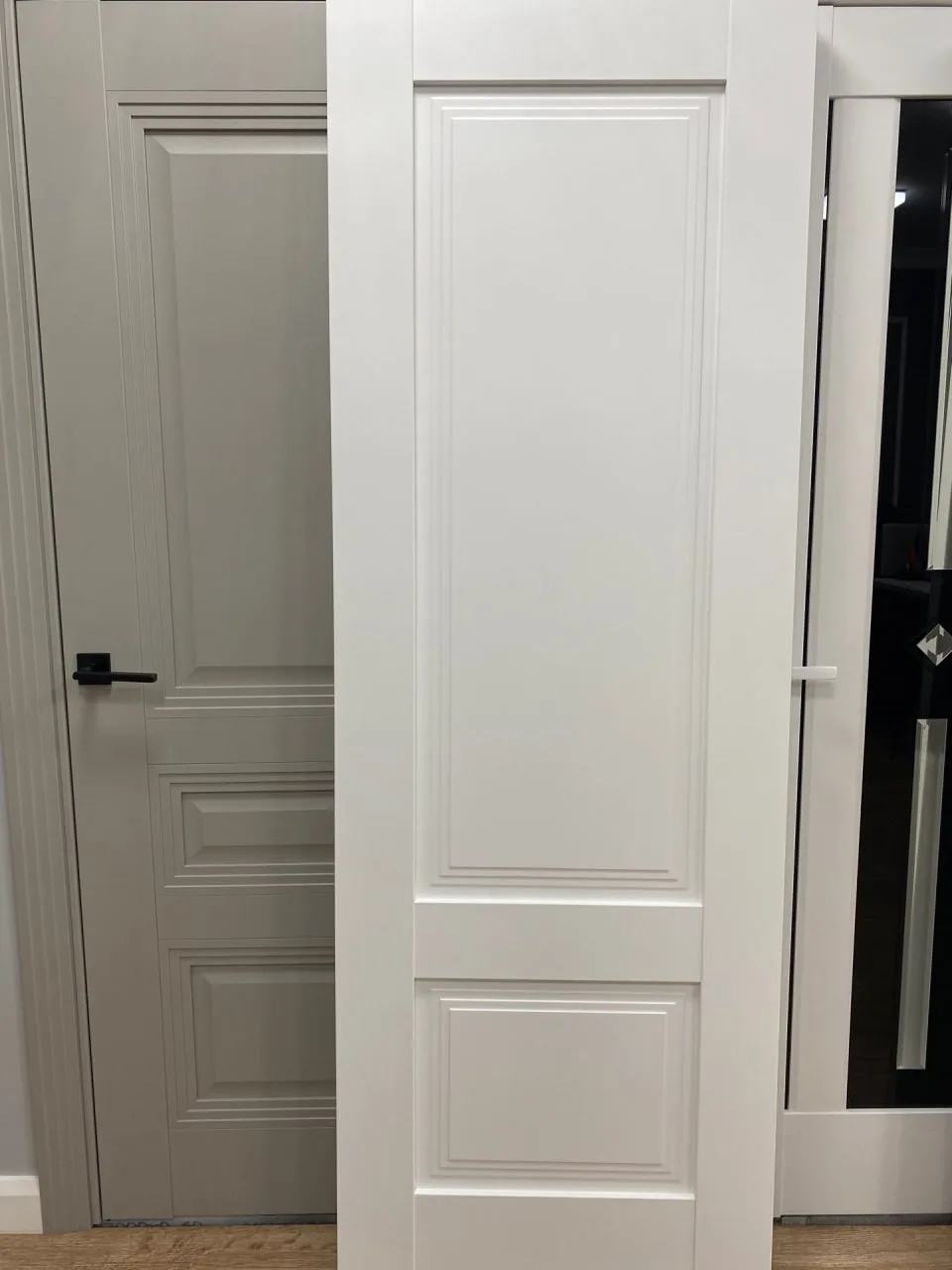 Классические распашные двери: Самый распространенный тип. От простых гладких полотен до филенчатых дверей с декоративными элементами.