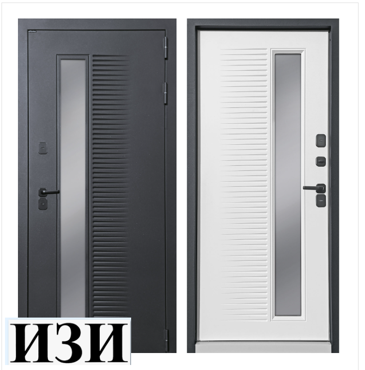 Толщина полотна 107 мм Отделка снаружи: покрытие антикоррозийное + уличный муар серый с блестками с наружной и внутренней стороны. Давление на полотне. Увеличенный наличник, видимая часть наличников с учетом косяка 100*100*100 Стеклопакет зеркальный (рефлектив серебро) Отделка внутри: панель МДФ 10 мм, винорит белый Наполнитель базальтовая плита и пенополистирол Основной замок сувальдный Гардиан 3011 Дополнительный замок сувальдный Гардиан 3001 Фурнитура черная Фуаро Уплотнитель 3 контура, один из них Шлегель Короб закрытый утепленный, с наружной стороны покрыт фольгоизолоном Термопрофиль в полотне и коробе Защитная накладка на порог