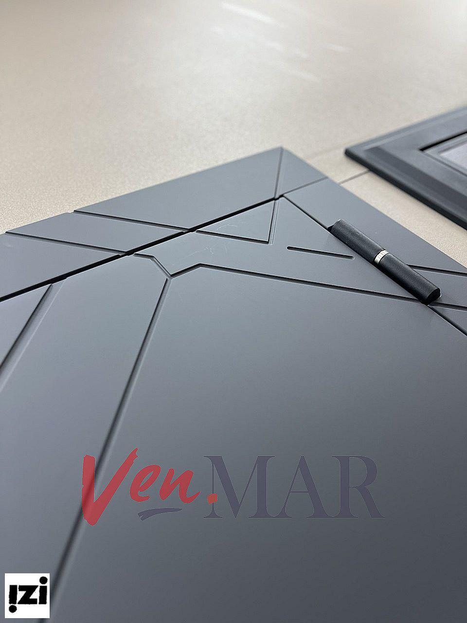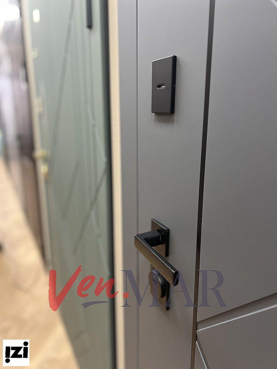 Внешняя сторона двери выполнена в благородном графитовом цвете, который придает фасаду вашей квартиры современный и респектабельный вид. Это универсальный оттенок, который гармонично сочетается как с классическими, так и с ультрасовременными интерьерами.