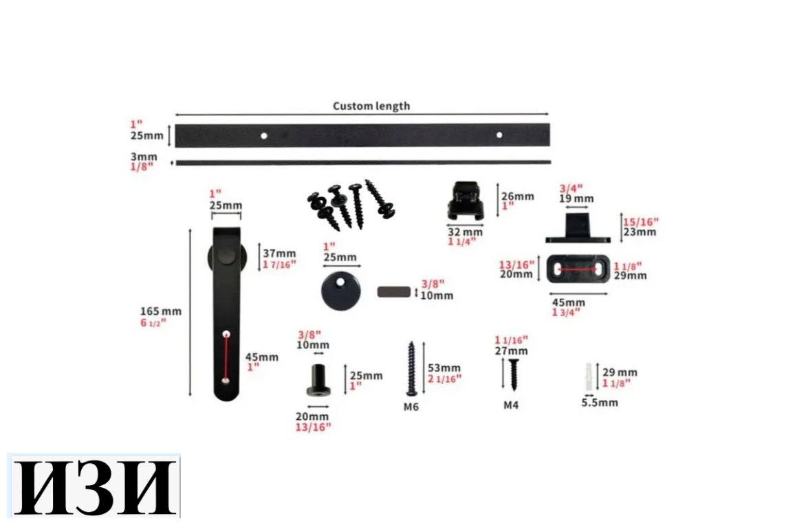Для какой двери подходитАмбарный механизм с треком 2.01 метра подходит для легкой двери массой до 45 кг., шириной до 1000 мм., толщиной до 25 мм. Учитывайте, что Ваша дверь должна быть на 10 см больше дверного проема. Длина трека должна быть в два раза длиннее двери. Если дверь 100 см, то трек должен быть 200 см. Диаметр ролика 37 мм.