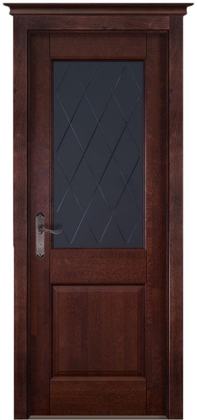 Данная модель выполнена в цвете «Махагон» из массива ольхи. Покрытый тонером и лаком массив ольхи имеет высокие показатели прочности и влагостойкости, поэтому двери из такого материала не коробятся, не рассыхаются, отлично переносят перепады температур и влажности. Конструкция двери: подетальная сборка (винтовое соединение); Размеры: ширина – 400/600/700/800/900мм; высота – 2000мм; толщина – 40мм; Стекло: мателюкс графит фрезерованное.