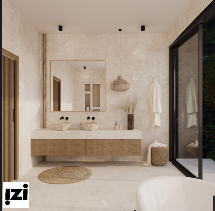 Ванная комната: Создайте SPA-атмосферу с натуральными оттенками и утонченным блеском.
