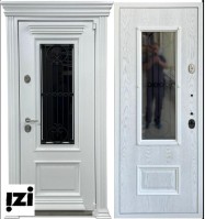 Дверь окрашенная белой эмалью с патиной на широком багете