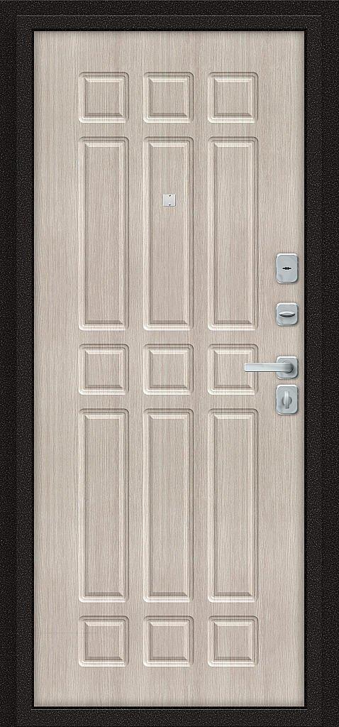 - Усиление Семь усиливающих уголков и защитный карман для замков. Дополнительную стойкость ко взлому обеспечивают два противосъемных штыря.