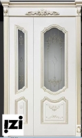 Межкомнатные двери Рим 2100мм, рал 9001, золото эмаль стекло