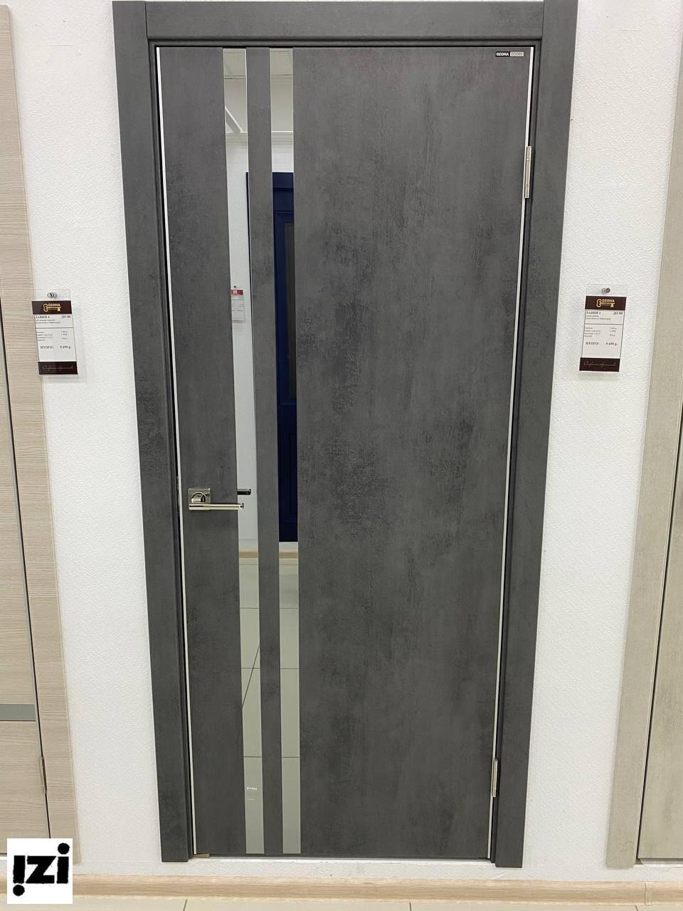 Межкомнатные двери ЛАВИЯ 1 ДО Правая Серый Камень с алюминиевой кромкой