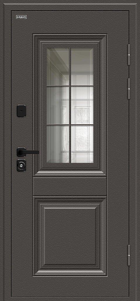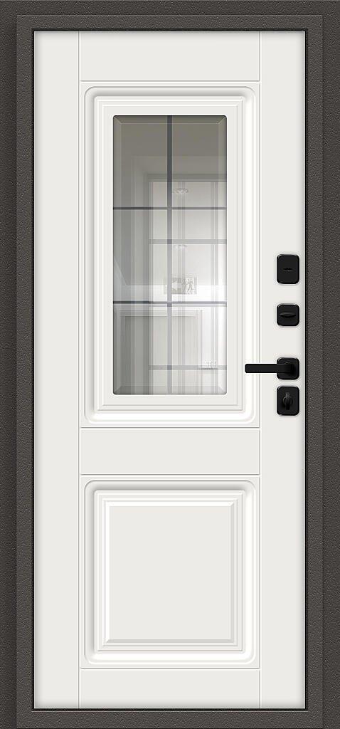 - Отделка снаружи Стальной цельнопрессованный лист «Monolith» с декоративным тиснением, обеспечивает повышенную прочность и защиту от коррозии (в отличии от дверей с «металлофиленками»).