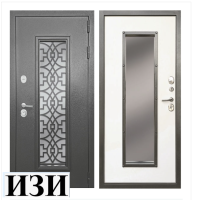 Входные двери Фаворит антик серебро Белый матовый, вставка зеркало, квартира
