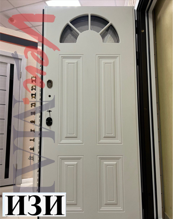 Наружная отделка: Накладной багет -Арарат-4 + стеклопакет арочный 3х камерный зеркальный ,панель МДФ 16 мм, цвет кварц айс (белый) Утеплитель: терморазрыв!!!Минплита 90 пенопласт, фольгоизолон